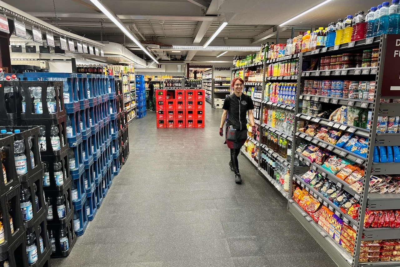 Unser Getränkemarkt kann sowohl über unserem Hof, als auch vom Markt aus erreicht werden. Unser erweitertes Sortiment bietet eine vielfältige Auswahl an Mineralwasser und Bier in verschiedenen Größen und Gebinden, als Kisten, Flaschen und Dosen. Das Regal mit den Säften der Region ist eine ganz bunte Sache mit Erfrischungsgetränken, Mischgetränken, Tees in großen und kleinen Packs, Kraftbieren und Gekühltem. Ferner sind in den Regalen salzige Knabbersachen und Grillkohle zu finden.