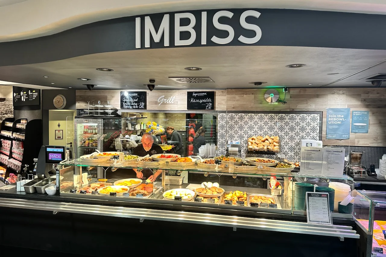 Das täglich wechselnde Angebot an Tagesgerichten entnehmen Sie bitte dem Speisenplan. Selbstverständlich verpacken wir Ihnen alles fachgerecht zum Mitnehmen. Oder Sie gönnen sich eine kleine Verschnaufpause in unserer gemütlichen Imbiss-Oase. Genießen Sie eine Tasse frisch gebrühter Kaffeespezialitäten oder frisch zubereitete Fruchtsäfte und entspannen Sie bei einem kleinen Snack aus unserer Warmen Theke.